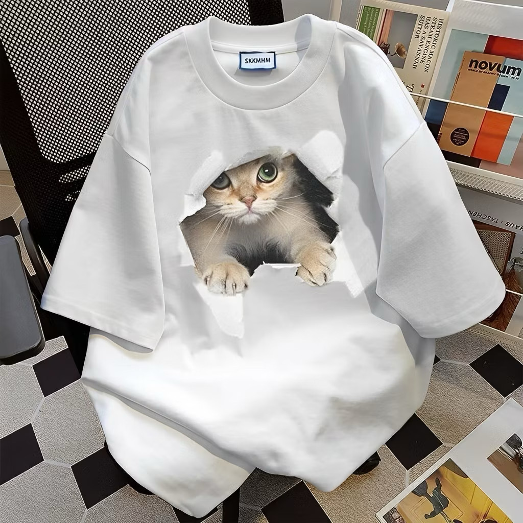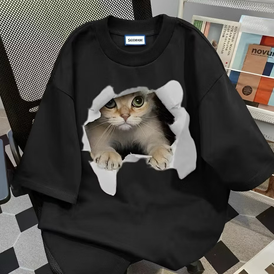 เสื้อยืดคอกลม-แขนสั้น เสื้อลายแมว