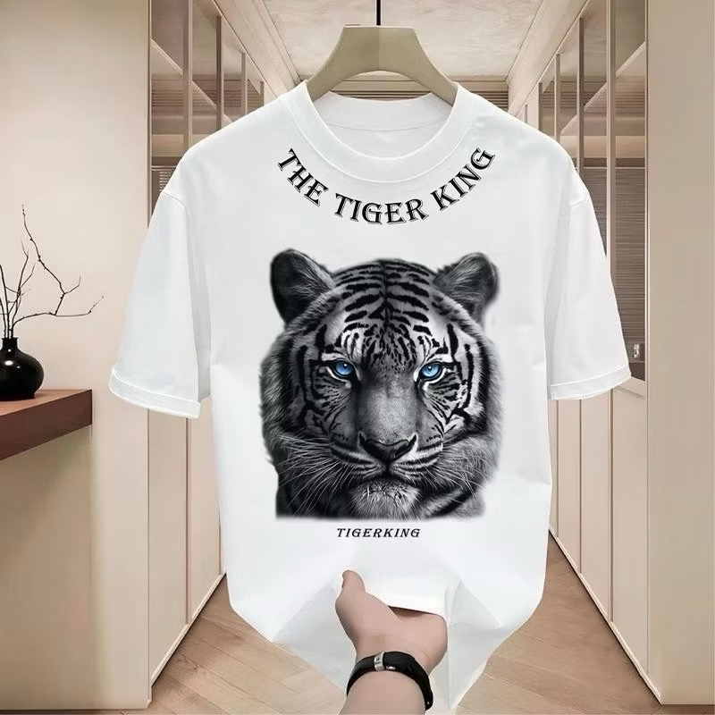เสื้อยืดคอกลมแขนสั้น สกรีนลายเสือ