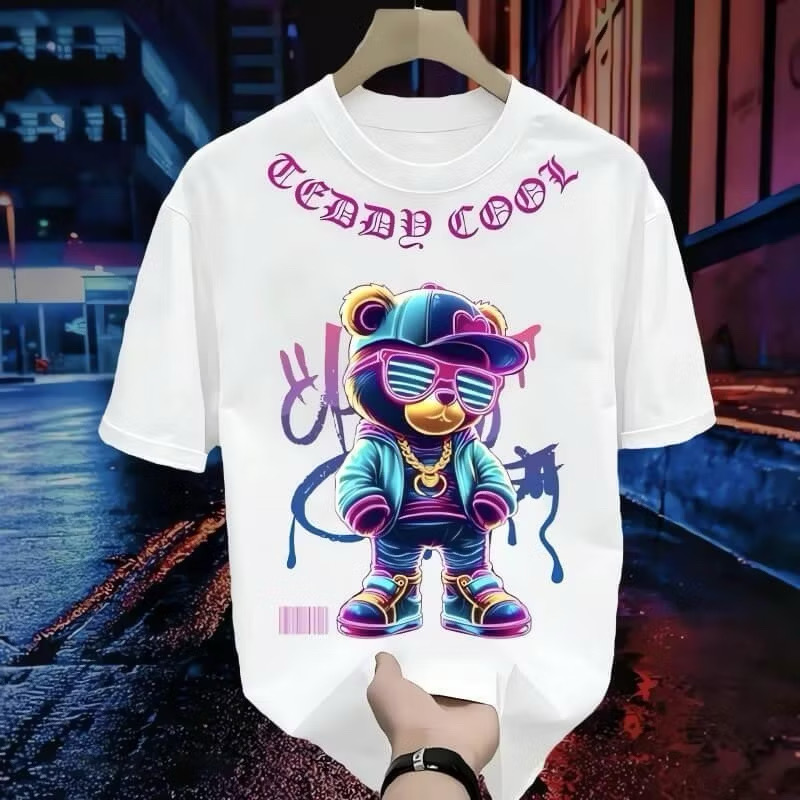 เสื้อยืด เสื้อยืดผู้ชาย Oversize “Super mario” แขนสั้น ไซซ์ แฟชั่นฤดูร้อน แนวสตรีทสีขาว